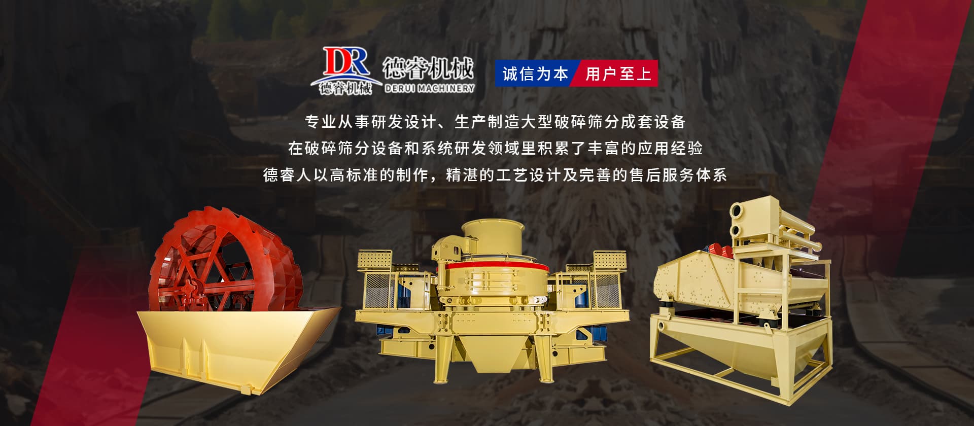 “誠信為本,用戶至上”德睿人以高標準的制作,精湛的工藝設計及完善的售后服務體系在破碎篩分設備和系統研發領域里積累了豐富的應用經驗。借助在破碎行業的豐富經驗,公司可向客戶提供碎石制砂生產線設計、安裝、調試等交鑰匙工程,同時承接破碎系統的爆破、裝運、破碎等生產運行總承包。